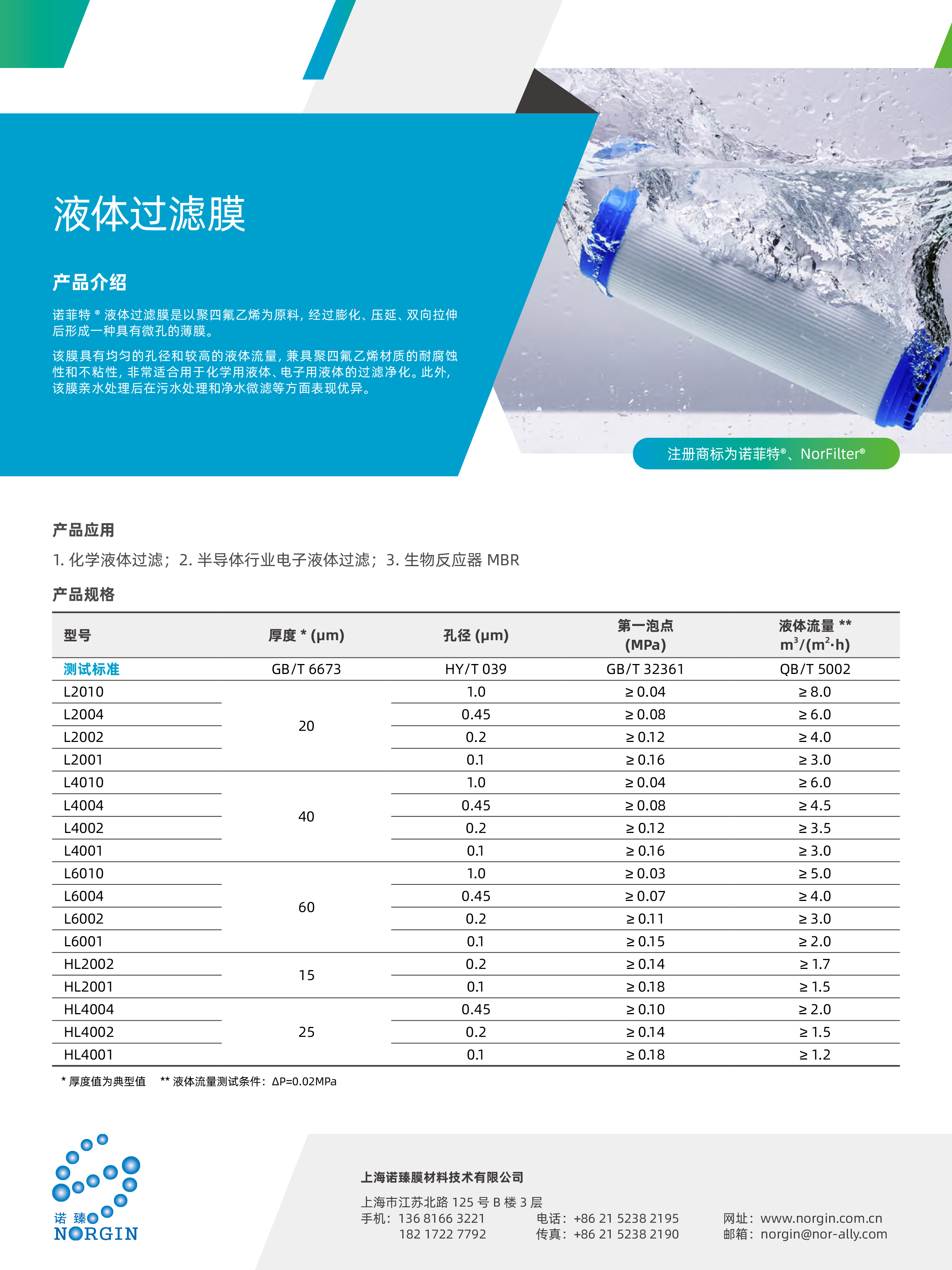 诺菲特®液体过滤膜是以聚四氟乙烯为原料,经过膨化、压延、双向拉伸后形成一种具有微孔的薄膜。